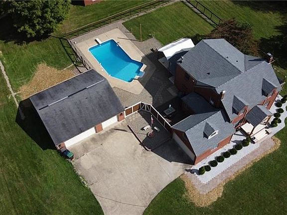 Prestigious, prime 5 acre property in Hermitage, PA with 3 bedrooms, 3 1/2 baths, 2 car attached, and 3 car detached garage, close to 376 and I80. This home is completely updated with genuine finishes. Welcome your guests to a newly designed chef's kitchen including gas cooktop, pot filler, island seating with granite countertops, ornate tray ceiling and crown mouldings. The inviting dining room to the right of the kitchen flows into the spacious living room overlooking the inground pool area. Relax in the shade or sun with wooded, beautiful views! Upstairs has a spacious master bedroom with a vaulted ceiling and ensuite with a big, jetted tub. The second large bedroom has a balcony with amazing views. The third bedroom has plenty of closet space. The pool equipment and liner are new. The brick building in the back yard can be used for extra storage. This is a must see, ready to move right in!