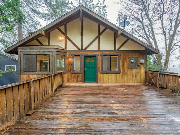 This is a 2-level home with 3-bedrooms, 2-bathrooms, and a floorplan that has 1,372-SqFt of living space. The home has NEW interior paint and NEW carpet and luxury Vinyl Tile flooring. There is a spacious living room that features a vaulted wood paneled ceiling, a beautiful brick fireplace, plus a double door that opens to a deck balcony. Enjoy breathtaking views off your private deck balcony where you can add seating. Perfect for anyone who loves nature. This can also be a great vacation, retirement or even an investments property! This sale includes 3-PARCELS, totaling 9,000-SqFt of private land! The property is surrounded by fresh trees and mountains. Less than 5 miles from Hortencia's at the Cliffhanger Restaurant, Camelot Alpine Camp, Lake Gregory Regional Park that includes the lake and a dog park.