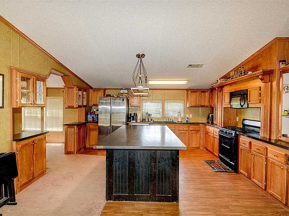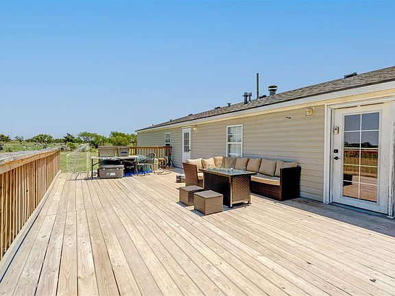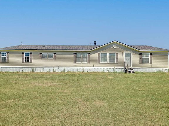 Huge 2,300 sqft manufactured home on nearly 10 acres. This property for sale in Indiahoma features 4 bedrooms plus an office, two living areas, a large open kitchen with island, built-in back deck + separate deck for above ground pool, primary suite with jetted tub, a working wood-burning fireplace, and much more. There is a small pond on the property and an assortment of trees. Roof was replaced in 2021 and inspected after the hail storm for stability. Water heater is less than three years old, and the fridge, washer, and dryer stay with property. Sold AS-IS.