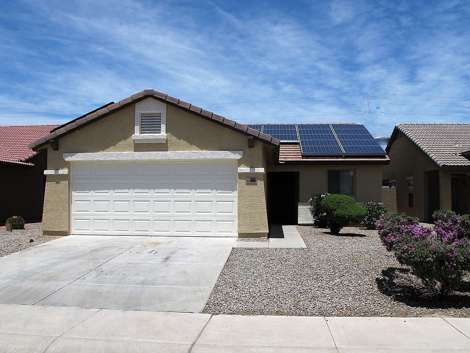 Fantastic single level home in highly sought after Rancho Vista community checks all the boxes! With fresh paint inside and out, tile floors with carpeted bedrooms, maple cabinets and upgraded light fixtures, this home stands apart. Nice open great room floor plan. Large backyard with covered patio,extended concrete slab area with separate concrete slab for spa, gazebo or above ground pool. Utilities? SOLAR PANELS ARE OWNED! That's right, no payment - just savings each and every month! Walk to 2 community parks with covered play areas, jungle gyms, basketball courts. Walk to elementary/middle school. Abundant town center shopping-dining and entertainment is 1 mile away at Watson and 1-10.