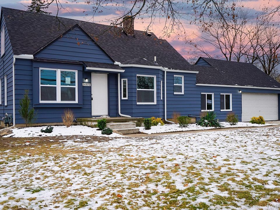 Freshly renovated bungalow on a full basement with an attached garage on a wide (100') 1/3 acre lot. Home sits back from the road. Kitchen features new whte Shaker style cabinets, granite counters, undermount stainless steel sink and subway tile backsplash. Living room has coved ceiling. Formal bayed dining. Bath features new vanity, top, floor and fixtures. Newer flooring throughout. Some new interior doors and trim. New paint and fixtures throughout. Large upper bedroom with builtin shelving and drawers. Heated breezeway/bonus room/family room leads to garage with new rollup door. Room sizes are estimates. Clean open heated basement with 100amp electrical and glass block windows. Freshly painted exterior. New windows and roof. Professionally landscaped. Seller will supply new kitchen appliances but ONLY if it's negotiated in your offer. Taxes are currently non-homestead but will be rated at a lower millage for an owner occupant buyer. Owner is a licensed broker in the state of Michigan. NOTE: Also see our renovated ranch listing next door (24951 9 Mile, just east) with a basement and huge garage.