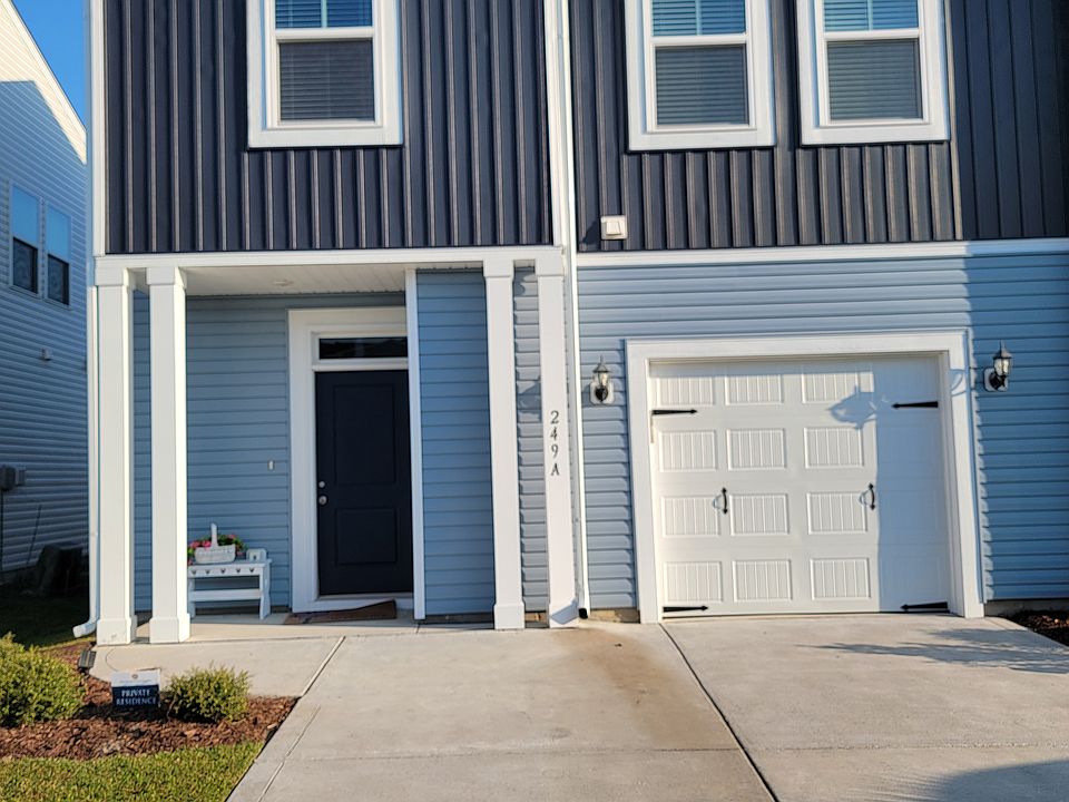 New construction 2 level townhome 3 BR and 2.5 bath with garage and partially enclosed backyard. Close to both Sunset and Ocean Isle beaches. Close to grocery stores, restaurants and multiple golf courses. The townhome has 3 fully furnished bedrooms, living room, eating area and kitchen. Kitchen includes granite counter tops, stainless steel appliances, pots, pans, dishes, silverware, coffee pots etc. Full size washer and dryer. Bedding and linens included. Rent includes internet and lawn care. Master bedroom on first floor with king size bed and ensuite bath. Second level has two bedrooms each with queen beds and a shared full bath. No smoking.