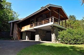Frank Lloyd Wright Eat Your Heart Out! Fall in love with this fascinating mid-century modern home privately nestled on almost 5 acres. The indoor and outdoor areas merge in perfect harmony. The large wrap-around cedar-covered deck is ideal for enjoying the peace of raindrops and the gifts of Mother Nature. The living room has a vaulted cedar ceiling, granite fireplace, and walls of windows and redwood. The beauty of simplicity and quality is enjoyed throughout the home. The kitchen has Carrara marble counters, Kohler sink and new stainless appliances. The main living is on one floor with a primary suite with a full bath, two well-proportioned bedrooms, and a home office with a slider to the yard. The lower level has finished space for exercise or a TV room. This one-of-a-kind home offers you peace and privacy as soon as you enter the driveway. You'll love your hideaway while enjoying an easy commute to New Haven or Hartford, fabulous restaurants and shops on Main St Middletown, and Deerfield Farm right down the street. City close, country fresh!