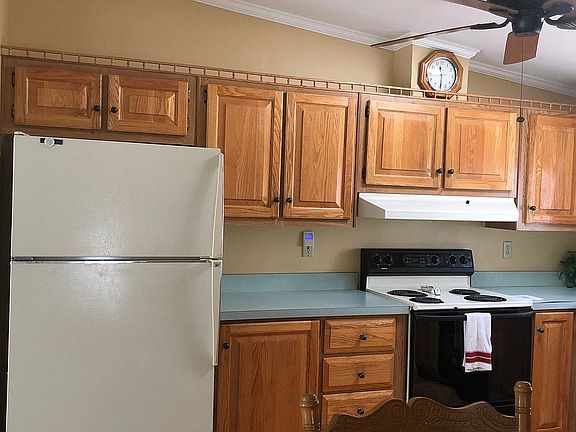 Located directly on the cul-de-sac in sought after Leisurewoods, this lovingly maintained double wide home offers an open floor plan, tall ceilings, oodles of natural light, ceiling fans and skylights. The kitchen features a generous sized dining area that opens to the laundry area and the living room featuring a nice picture window. The bathroom is complete with a walk-in shower featuring double seats. Newer carpet in the bedrooms which also have cedar closets! Vinyl siding, a shed and a great back deck are the finishing touches on this cozy home in an active adult community. Monthly fee includes taxes, curbside trash/recycle PU, common area & road maintenance, use of clubhouse with full kitchen, billiards, in-ground pool, a fire pit, a bocci court and a courtesy van! An application for approval into development attached.