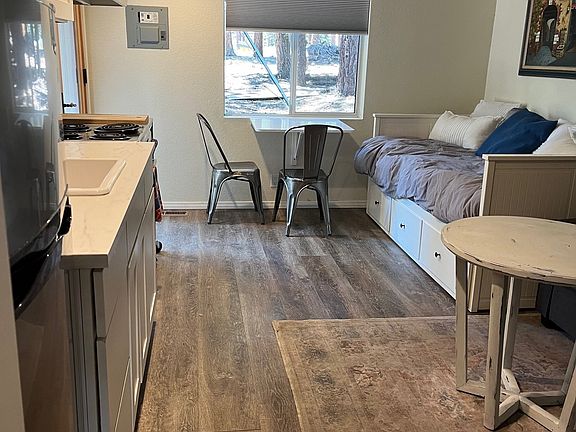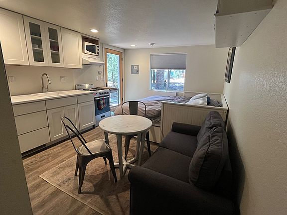 Private entrance, King bed, full kitchen, full bath, w/d, ski storage. Perfect to use your ski passes this winter! We are requiring a lease of 3 months, to 6 months preferred. An extension may be a possibility. This beautiful sierra retreat is the perfect place to park your toys, your belongings and access all that Mammoth has to offer, while calling it home. It is ideal for one person unless using this as a vacation location. It's an In-law suite, completely furnished, that contains two points of entry (one through the garage and its own separate entrance). It's in a very quiet neighborhood in Mammoth Lakes, centrally located to town. It includes: a full kitchen, full bathroom (full shower), a twin that can be converted into a king bed, a small sofa bed A wall table A table and two chairs Closet area. Back deck Access to the front deck Small area in the garage for outdoor assets (bike/ski/snowboards/boots) Washer/Dryer Full access to 30k+ of trails Quiet neighborhood Central walking distance: 7 minutes to the Village at Mammoth, 10 minutes to Main Street Shopping, 10 minutes to the bus stops. Rental agreement may be up to 6 months depending on interest. Owner lives on property in main house. NO pets will be considered. (PLEASE DO NOT VISIT THIS ADDRESS WITHOUT CONFIRMATION FROM THE OWNER) Heat, Water, Trash (small storage) included! Renter is required to provide their own wifi .