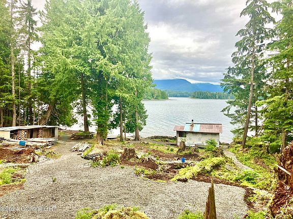 The perfect getaway! Escape on your own wild piece of Alaskan island waterfront, just minutes by boat to town, yet with all the peace & privacy you could dream of! This 0.73 acre lot has 111ft waterfront, a small basic cabin, a spring, delightful landscaping & no property tax! Just mins to Klawock harbor, town is close when you need it but you can feel lost in the wilderness the rest of the time.Located on the east side of Wadleigh Island, the property has a small, basic cabin with a bed and a wood stove, giving you shelter & a fun place to stay when you want to get out of town. It does not have running water or insulation. Full of character, there is also a cleverly constructed Alaskan style storage shed. There are a lot of extras, such as some lovely black set rock that you could use for pavement or a fireplace. There is also a spring at the top of the property, the seller said he had been planning to make a little waterfall on the property! This is a great property for homesteading or as a weekend getaway. The seller said that it is a great spot for salmon fishing right off the beach, most varieties, and that at times the seals chase the fish into the beach and he has even caught salmon with his bare hands! He also said that deer love his property making getting your meat harvest quite easy. He also said there are enough spruce growing, just the right size for poles for your next cabin! Wadleigh Island is a wonderful place to live and this property is about as close to the sheltered harbor of Klawock as you can get making year round access easier than most lots. Just a few minutes boat ride, Klawock has all the services you need when you need them, and being on an island gives you a more wonderful experience of the Alaskan wilderness than you would in town. The property has been charmingly landscaped with cute paths and little gardens throughout. The property is truly a delight to enjoy with many lovely spots from which you can enjoy the views & serenity. Perfect for up to several small cabins with 3-5 possible sites, make this a fun vacation haven to share with friends and family. If it's a house you prefer, bring in an excavator and that is possible too. This is the best area for year round living, and the cheapest waterfront too! It's getting harder to find land in the bigger towns of Craig and Klawock but Wadleigh Island is a great option. Enjoy peace & privacy but access to town services is just a boat ride away. A longer dock is possible, but a boat haul out system would be the cheapest and easiest option here due to a shallow beach. So if it's a weekend getaway you need, a well started homestead, or a new home site, this property has lots of options! At this great price it won't last long so call today!