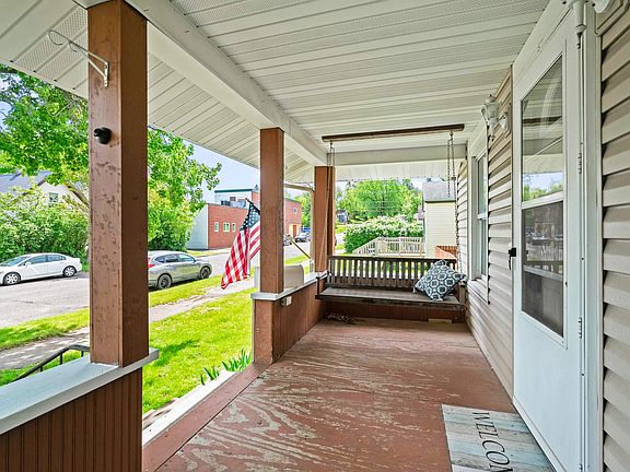 Conveniently located in heart of Cloquet this home is perfect starter home. New laminate flooring in living room & kitchen, main floor bedroom & bath, updates in main floor bathroom. Finished upper level, open front porch,2 car detached garage with shed, fenced yard with patio area & flower beds. Newer vinyl siding & blacktopped drive.