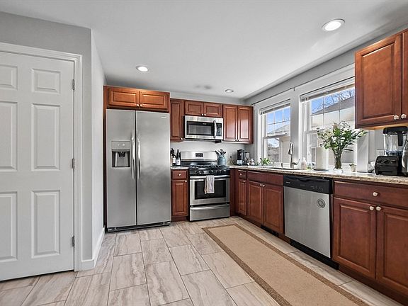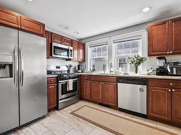 Spectacular Two Family home perfect for investors and homeowners alike. Each unit presents two bedrooms, a full bathroom and a spacious layout with well-appointed kitchen, dining room, and living area featuring hardwood floors throughout. A versatile bonus room is perfect for a home office. Unit 2 boasts granite countertops, stainless steel appliances and upgraded cabinets with in-unit laundry and access to the walk-up attic. Both units feature updated bathrooms and elegant French doors adding to the charm of the home. Plenty of parking is available with a 2-car garage, plus additional off street parking. Gas heating systems replaced in 2019 and new roof in 2017. Conveniently located near public transportation, shopping, restaurants and more.