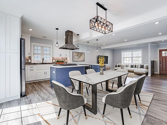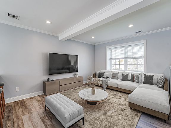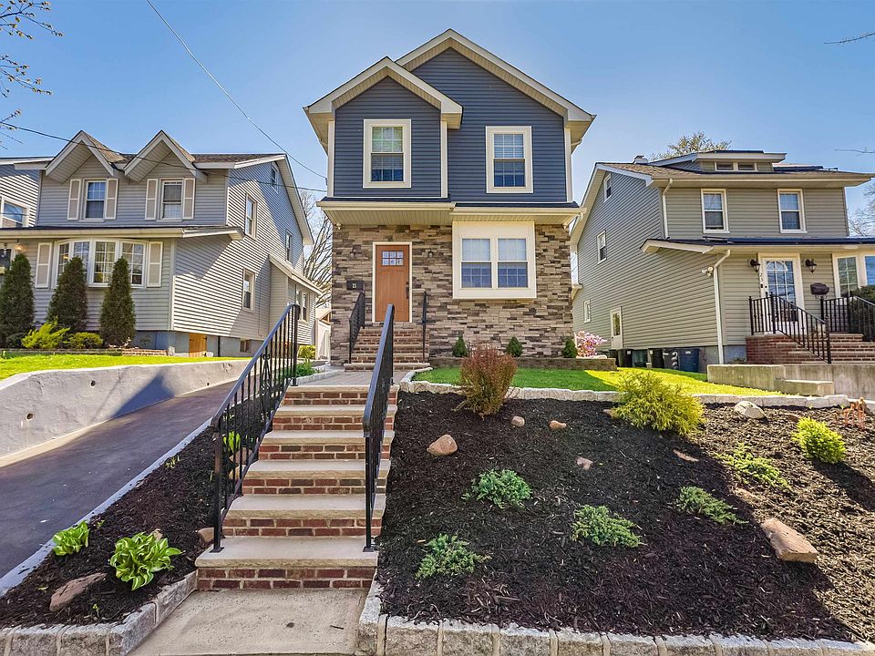 Fully renovated in 2021, this move-in ready single family home located on a lovely tree lined street in the heart of Ridgefield Park is your dream home. First floor features an open concept layout with entry foyer with closet and livingroom/ diningroom/ kitchen combo area that leads you out to the patio deck and manicured fenced in yard. Chef's eat in kitchen features stainless steel appliances, kitchen island with stovetop and overhead range hood, quartz countertops, and designer cabinetry. Second floor has three bedrooms with ample closet space and modern bathroom with dual vanity with designer sink and hardware, soak in tub and shower with a separate WC. Finished basement is perfect for a family room or game room, also has a full bathroom, and a washer/ dryer closet. Double garage for additional storage and fits two cars; additional private tandem parking on property as well. Conveniently located near major highways, schools, and parks.
