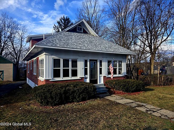 Charming village home offering four bedrooms and two baths. The layout includes two bedrooms on the first floor and two-plus on the second floor. Features a formal dining room, with a pellet stove included, a cozy living room, and a great enclosed front porch for relaxation. The kitchen comes equipped with appliances, including refrigerator, stove, and dishwasher. The back enclosed porch adds convenience, while the deep yard provides plenty of outdoor space. Includes a two-stall detached garage a nice basement, ideal for a recreational room or extra storage and a new roof. This home also comes with select furnishing, making it move in ready and full of potential!