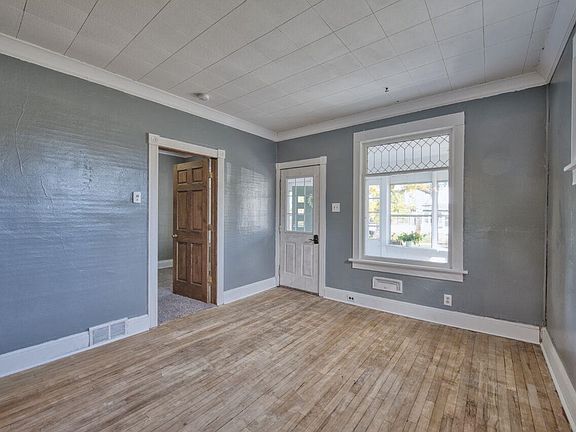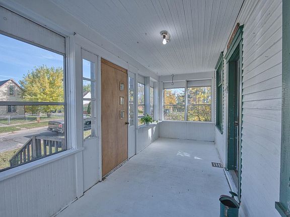 Step inside this beautifully refreshed older-style home. The welcoming 3-season porch entry, filled with windows, sets the tone for a bright and inviting atmosphere. Inside, you’ll find original hardwood floors ready to be brought back to life, soaring high ceilings, and a mix of brand-new vinyl clad windows plus unique picture windows with stained glass uppers that add character. There is a newly renovated kitchen, complete with all-new cabinets, countertops, sink, and newer appliances. A stylish moveable island with a butcher block top and extra storage makes the space both functional and versatile. The bathroom has been completely updated with new fixtures, tiled wall and floor. This home also offers three bedrooms—two upstairs and one on the main floor—providing flexible living arrangements. The basement is wide open, offering endless possibilities with a workshop area, along with plenty of storage, or add useable living space. Mechanical updates include gas forced-air heating and updated electrical breakers. Freshly painted and professionally cleaned, this move-in ready home is completed with a detached one-stall garage at the back of the property.