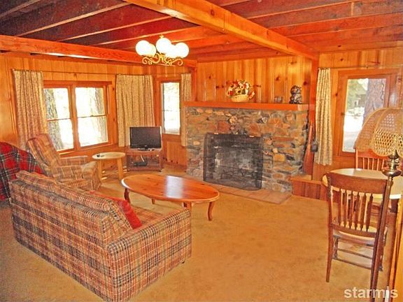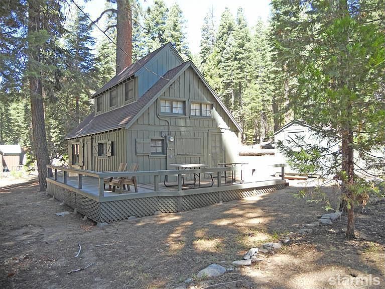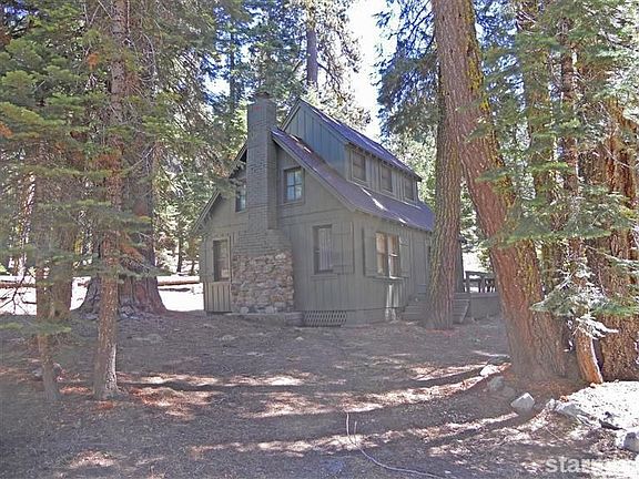 Just steps to the American River, this Forest Service cabin on a flat lot is just the Tahoe get-away that you have been waiting for. It has been well maintained, and is sold furnished. Move right in and start exploring the Sierras. Play soccer or baseball in the yard, jump in the swim hole in the river, then relax on the porch and watch the stars come out. Newer roof, siding (most), and shed. Interior knotty pine and open rock fireplace will take you back in time!