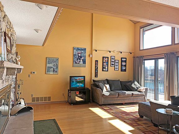 Amazing views of Lake Carroll, all day, every day plus spectacular sunrise and sunset ! Contemporary style waterfront home is well sited on the 1.6 acre property that includes 48' finished shoreline. Custom built home features an impressive stone chimney that extends through all 3 levels to offer wood burning fireplaces in the Living Room and the lower level Family Room. Upper level has 2 Bdms, full bath, and loft area that looks out over the Living Room. On the main level, all rooms have over- sized slider doors to the deck which gives plenty of room for family and guests to enjoy outdoor entertainment.  There is Frosted Oak woodwork, cabinetry and solid 6 panel doors throughout the home and engineered Oak laminate floors on the main level.  Spacious Living Room, opens to the  Dining room and Kitchen.  The new granite counters  and wide breakfast bar compliment the SS appliances.  The Main level includes a lovely Master ensuite that was recently remodeled to include a separate shower, deep tub and double vanity. The Bedroom has deep closets, wide view of the Lake and direct access to the deck.  The lower level is one of the family's favorite gathering spot with room to hang out by the fireplace/  a large game- bar area plus kitchenette and two slider doors direct to the covered patio. Full bath and Plenty of storage closets for equipment and weekend guests' gear.  The laundry and workshop are off the back hallway and also include a wide slider glass door direct to the covered patio and side lawn.  Just in case you need additional space, the home has a 30 x 22 oversized heated attached garage.... just right for ATV, golf cart, bikes, extra freezer and Lake toys.  This home will be your wonderful year around retreat with amazing views of Lake Carroll plus private waterfront access.