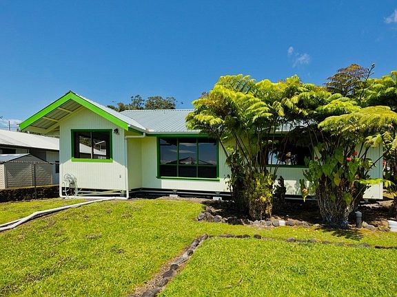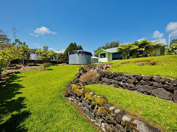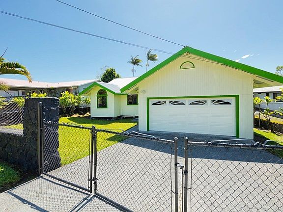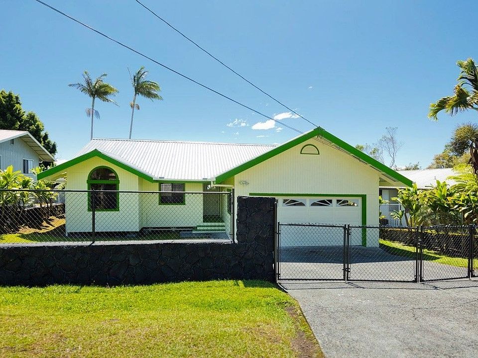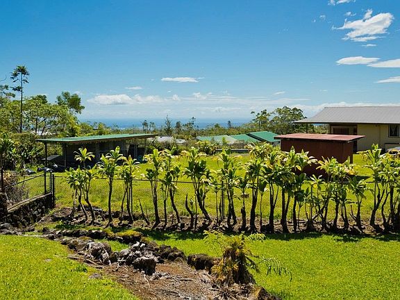 This welcoming three bedroom, two bathroom home is fully fenced and beautifully landscaped with ocean horizon views. Inside laundry just off kitchen area. 2 car garage with room for storage.The great room's vaulted ceiling opens up the living area and dining space which look out to a hapu'u fern and anthurium garden.
