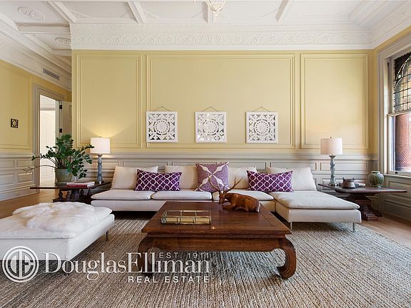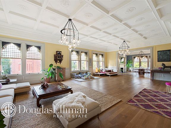 MAJESTIC MONTAUK CLUB. Exquisite FULL FLOOR five bedroom, four bathroom condominium home.Entering the loft through the foyer, one is immediately struck by the 12 foot carved coffered ceilings and the 12 stained glass windows with cascading South and West light into the 50 foot living and dining space, ideal for entertaining. To retain the historical integrity of this spectacular home, the owners had all of the millwork painstakingly restored locally using the traditional materials and processes that were used when the building was originally built in 1889. The Chef's kitchen boasts an oversized soapstone sink, custom made cabinetry, Moroccan tiled floor, walk-in pantry and a 8 burner Blue Star range with dual ovens and a copper vent hood. The formal dining room, which is separated with solid oak pocket doors for privacy, has an opulent wood burning fireplace. Past the living room, one enters the bedroom suites in which there are four generously sized rooms. The Master bedroom has beautiful French doors leading to a tiled terrace with stone balustrade, and a large dressing area with en-suite Master bath featuring an extra deep copper soaking tub and glass enclosed rain shower for two. The adjoining room is perfect as a separate den/home office/fitness room and also has access to the private terrace which overlooks Prospect Park and the Grand Army Plaza monuments. This home went through a multimillion dollar renovation which included such features as a five zone Central A/C with HEPA filtration, acoustical sound proofing underneath the flooring, radiant heat floors throughout the entire apartment, all new electrical systems, a separate laundry room with a drying closet and brand new 4 inch quarter-sawn American white oak floors. This landmarked building, which sits on the corner of 8th Avenue and Lincoln Place, was inspired by the Ca d'Oro on Venice's Grand Canal and was built in a romantic style Venetian Gothic architecture by the famed New York architect Francis Kimball. The distinguishing features of the building are the intricate terra cotta ornamentation, Quatrefoil windows and pointed arches, stained glass windows, Montauk Indian friezes and the red Spanish tiled roof. This one-of-a-kind modernized, yet historically rich home needs to be seen to be appreciated, as no other home compares to the unique and historical grandeur of the space. If you're tired of seeing glass boxes and cookie-cutter apartments and would like an apartment with a story and a soul, this home is for you. Ideally located in prime Park Slope, next to Prospect Park and just 3 subway stops to Manhattan. Call us today for a private viewing. There is currently an assessment of $3,067 a month.