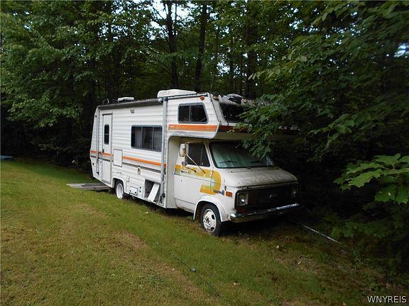 HUNTING CAMP 9.5 secluded, wooded acres. Trails, tree stands, trail cam. Includes 1990 37' camper sleeps 8 with water, electric, A/C, canopy, deck. Also 1977 Motor Home sleeps 7, electric, A/C. Motor is functional and in good shape. Drilled well, 1000 gallon holding tank. Maple, oak, ash, cherry. Level to moderate slope overlooks Tibbets Hill Rd. Great hunting! Must See!