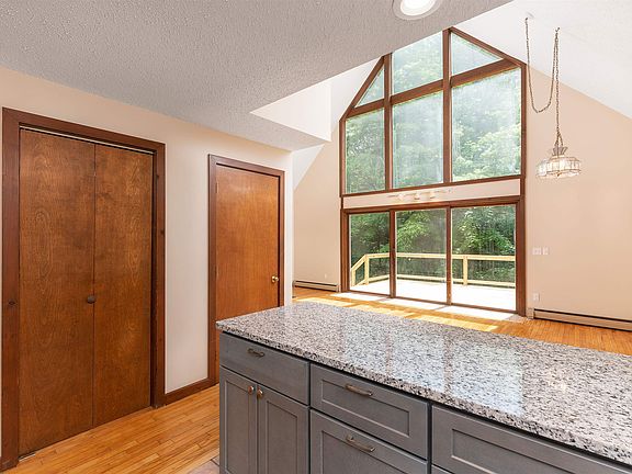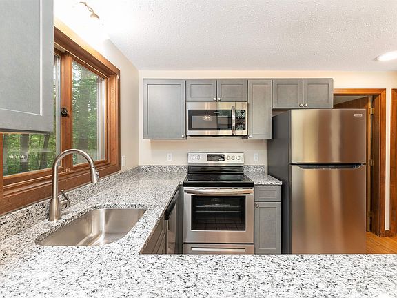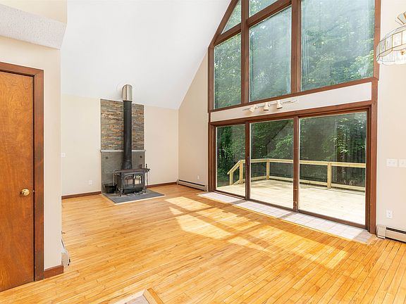 Newly renovated contemporary cape! This wonderful home is tucked away on a quiet road in the private Cranmore Shores Association neighborhood. Just a short distance from the beautiful sandy beach on Pequawket Pond, and close to all that the Mount Washington Valley has to offer including skiing, hiking, swimming, shopping and more. The main living area features gleaming maple hardwood flooring, cathedral ceilings, floor to ceiling windows for loads of sunlight, a cozy woodstove, and sliders out to the back deck. The brand new kitchen with maple cabinetry, attractive granite countertops, and all new stainless steel Frigidaire appliances is perfect for entertaining. Two first level bedrooms, a full bath, and easy access to the full basement complete this level. Upstairs you'll find a bright primary suite, with 3/4 bath. This property offers plenty of storage, a detached 2-car garage with power, and most importantly, privacy! Brand new 2023 heating system, kitchen, decking, interior and exterior paint, and more. A perfect primary home, vacation getaway, or investment property. Open House Saturday 6/17 11am-1pm and Sunday 6/18 11am-12:30pm. Agent interest.