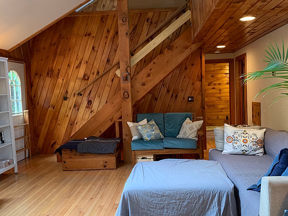 This year-round camp is nestled off the beaten path on 2 acres in Belgrade, ME down a private road. It is just 1.5 miles from beautiful downtown Belgrade Lakes and less than 1/2 mile from the public boat launch on Great Pond. The property features a detached two-car garage with storage. The property can be available furnished or unfurnished. There are two bedrooms and a full bath on the first floor and a loft bedroom and full bathroom on the second floor. There is a bonus playroom in the basement. There are multiple forms of heating including woodstove, monitor heaters, heat pump (AC as well), and electric baseboard in the bedrooms. Dogs are allowed and there is a fenced in portion of the property. Renter is responsible for all utilities (kerosene for heat, electric, propane for hot water/oven, internet, cable). Renter is responsible for snow removal and lawn maintenance. No smoking. Dogs are allowed. Cats not allowed.