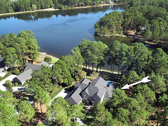 A lifestyle home in Pinewild CC on Lake Pinewild. Custom home with an elegant interior and a well designed floorplan for easy living. The lake views are fabuloius and are enhanced by the tiered decks and the beautiful in-ground pool. Daily needs are all taken care of on the first floor with Living Room, Master Suite, Laundry, Kitchen and Guest Room or den. Lots of storage and flexibility with the upper level that includes 2 excellent guest suites, a flex room, family room and two walk-in attic spaces. The home is beautifully landscaped and irrigated from the lake. The walk-out basement area is great for extra storage for outdoor equipment and pool supplies and systems. The pictures are only half of the story. A Pinewild CC membership is available as an option for the new buyer.
