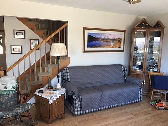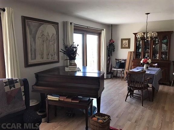 Wonderfully private and peaceful contemporary on 1.74 acres. Wooded lot provides natural privacy. 3 bedrooms and 2.5 baths, with open dining and living area. Great window placement and sliders to 3 large decks, and a balcony off the master bedroom. Cozy family room in walkout lower level. Many upgrades and improvements including: laminate on main living level, carpet in lower level family room, windows and doors, installation propane furnace and central air, water heater, roof, water heater, refrigerator, kitchen counter, well pump, garage door opener, chimney recapped, replaced top two deck floors, and more.