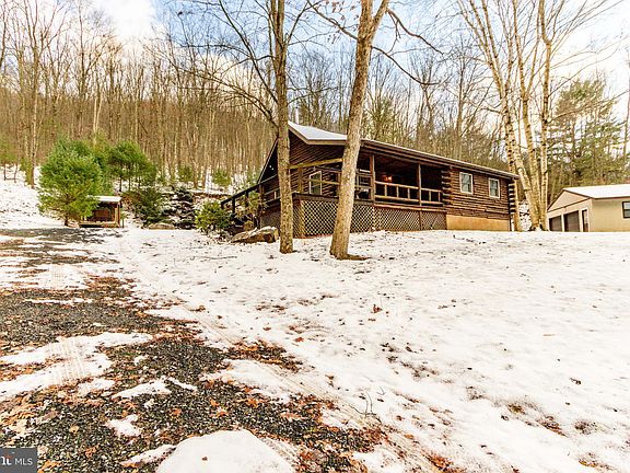 Incredible opportunity to own a cute log cabin in the woods of Milroy PA! This cute relaxing cabin sits on 7 acres of land, backs up to Bald Eagle State park, only a few miles from Reeds Gap state park, close to many hiking and snowmobiling trails, and about a half hour drive to Penn State! Property would be great for someone to live full time, use for a seasonal cabin, or possibly made into an AIR BNB (verify with Twp). The log cabin features 2 bedrooms with loft, 2 full bathrooms, large wrap around deck overlooking the woods and drink your morning cup of coffee, huge loft area with 4 beds for extra sleeping areas, large kitchen with gas/propane range, large dining room table for games and dinner parties, open living room with exposed wood beams and a large wood stove to provide the home with extra heat in the winter, a fully finished basement with full bathroom and more! The large 3+ car garage is great for cars/equipment and other storage, an additional shed available for storage, outside fire pit, outside swing, and more! This home is a must see and ready for the next owner to enjoy!