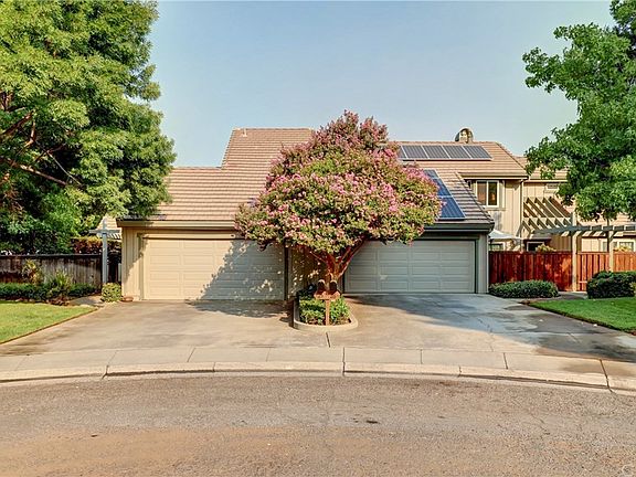 Location, location! This great two bedroom, 2 bathroom home sits on a cul-de-sac just inside of California park. The front yard welcomes you with beautiful landscaping, mature trees and an enclosed patio area. As you enter, you are greeted to an open living room with vaulted ceilings and a wood burning fireplace, tiled entry, laminate vinyl flooring downstairs and updated carpeting upstairs. The kitchen is spacious with tile counter tops, garden window and a newer stove. The dining room looks out to the good sized private backyard with its majestic boulder which is a one of a kind. The master bedroom has a private balcony over looking the huge back yard. A/C unit is 2 years old and the hot water heater is newer also. Close to walking trails, community lakes, parks and just a short distance to beautiful Bidwell Park.