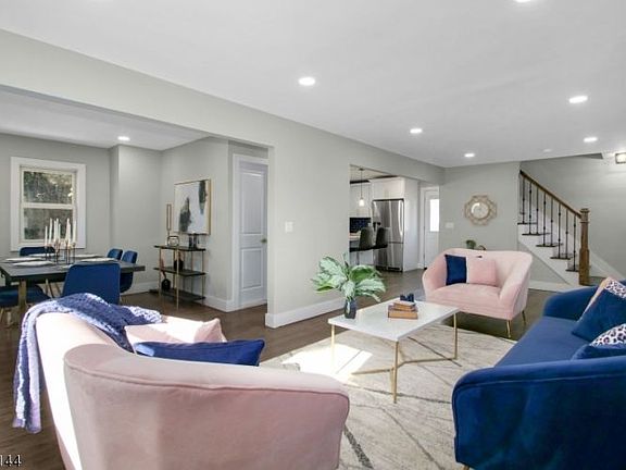 Welcome to this beautifully renovated Colonial home where there is space for everyone! Enter into this bright and airy Living Room with recessed lighting and plenty of windows allowing an abundance of natural light flowing into the Formal Dining Room as well. Perfect for a cozy dinner or extend your table in this space to accommodate a large gathering. Stunning open concept kitchen with crisp white soft close cabinets featuring gold accents, center island, tile backsplash, quartz countertops and SS appliances. Master Bedroom with recessed lighting and walk in closet. En-suite with new designer bath. Two additional bedrooms and full bath complete this level. Hardwood Floors throughout. Finished basement perfect for a family room or office, laundry area and storage. Over-sized freshly painted deck with direct access thru the kitchen. Double wide driveway.for easy parking. Nothing to do but unpack and relax!