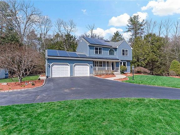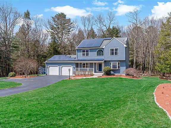 This is a well-maintained 3 bed 2.5 bath colonial, situated at the end of a cul-de-sac on a 2.85 acre professionally landscaped lot with beautiful stone walls & deck overlooking your private wooded backyard. Large living room features a bay window & propane fireplace. Eat-in kitchen with sliders leading out to the deck, formal dining room, and bath complete the first floor. All three bedrooms are located on the second floor, which includes the primary suite with a large jacuzzi tub, and laundry conveniently located in the 2nd full bath. Recent updates include a new well pressure tank & submersible pump (7/2021), refrigerator & dishwasher 2020, and electric water heater 2018. Other great features of this home include an attached 2 car garage, farmers porch, central air, solar panels, sprinkler system, storage shed, & paver patio just outside the full walkout basement.