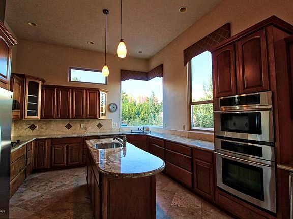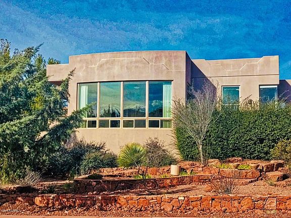 Crimson View! Magnificent custom built home...one of the most desirable communities in West Sedona (All on One Level). Home provides some of the best views of Thunder Mountain, Coffee Pot, and Airport Mesa. Home has just been professionally cleaned and is move-in ready. Entrancing foyer with a stain glass front door and checkerboard inlay floor. Large 25x25 Great Room with a 22' viewing screen of panoramic views. 12' ceiling and Travertine flooring that captures the elegance of this home. (with some visible tile cracking) Lobby sized ceiling fans provide a cool and gentle breeze. Gourmet kitchen with views of Coffee Pot rock has Brazilian granite counters, 2 Blanco stainless sinks, 30x92 island, wine cooler, upgraded dark cherry cabinets, and stainless appliances...and a walk-in pantry.