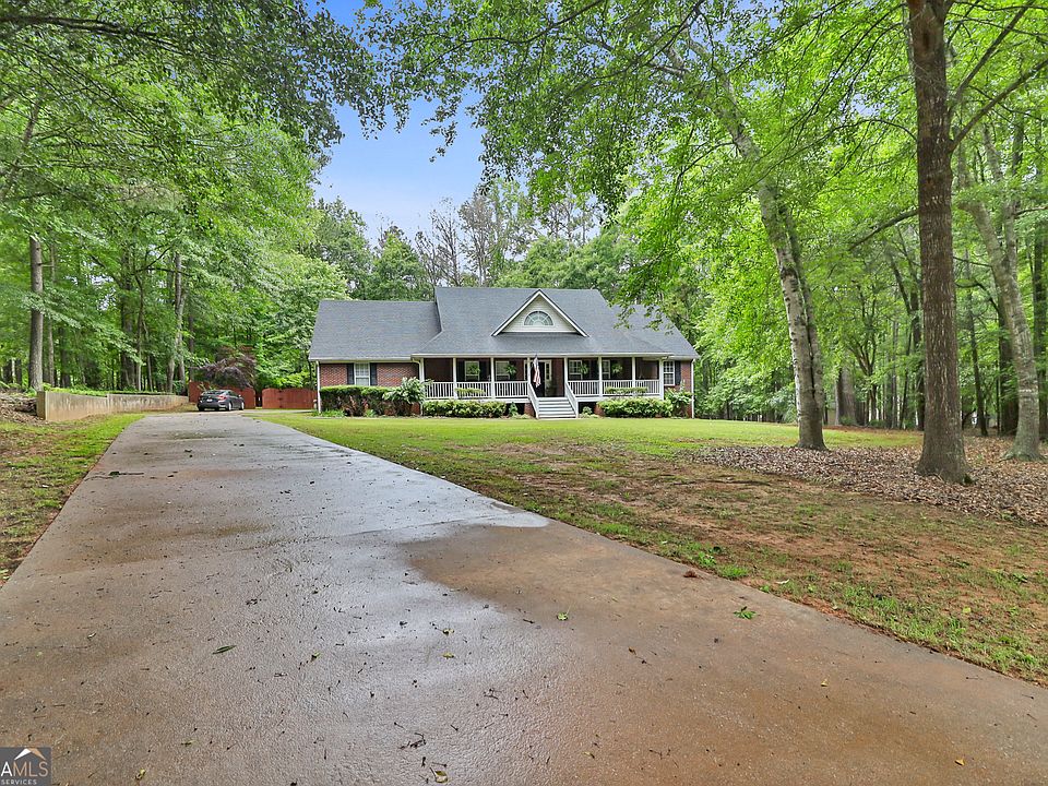 Rare find! 4 side brick ranch with 4 bedrooms, 3.5 baths, open front porch, office/playroom, separate cozy dining room seats for 12 and ceramic tiled floor, high ceiling family room with hardwood floor, ceiling fan and fireplace, cute breakfast area, gourmet kitchen with granite counter top, tiled back splash, stainless steel appliances, lots of cabinets and ceramic tile floor, laundry room with cabinets and laundry sink, 2 car garage, large back deck, fenced backyard with 10x12 storage shed and fire pit, level open front yard and stunning master bedroom with hardwood floor, ceiling fan, trey ceiling, master bath with ceramic tile floor, garden tub, tiled shower, separate toilet closet, large walk in closet and double door to back deck. Attic has spray foamed roof with architectural shingles. Great location - 5 mins to I-85 and Publix Grocery Story, next to B.T. Brown Park Pavilion and Reservoir, a 300 acres lake maintained by The Coweta County Water & Sewerage Authority, where public can use for fishing.