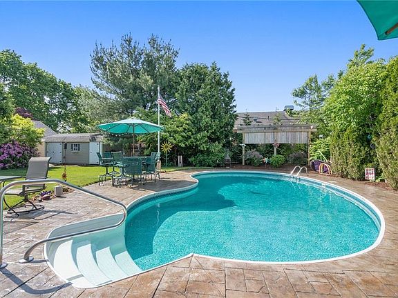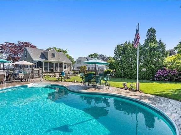 Fantastic 3 bed 1.5 bath turnkey cape available for the first time in over 30 years. True pride of ownership describes this Riverside gem, situated on an oversized and beautifully manicured lot with an in-ground pool. Warm and welcoming first level has a circular floor plan that features a bedroom, full bath, sunken living room with original built-ins surrounding a brick fireplace, hardwood floors, updated eat-in granite kitchen with stainless appliances, and access to your amazing screened-in stone patio. Two additional bedrooms with a half bath on partially dormered second level. Basement is partially finished with laundry and added storage. Low maintenance siding, architectural roof, mechanicals and double wide driveway; all impeccably maintained. Beat the summer heat in your private resort-like backyard with a sparkling in-ground pool! Fully fenced yard includes a hardscaped patio and pool area, mature plantings, and large shed. Enjoy this great low traffic neighborhood located nearby shopping centers, restaurants, and a short distance to Barrington and the East Side of Providence. Additional Riverside amenities include the East Bay bike path, water access at Willett Pond, Sabin Point Park, Crescent Park and carousel. This is the one!