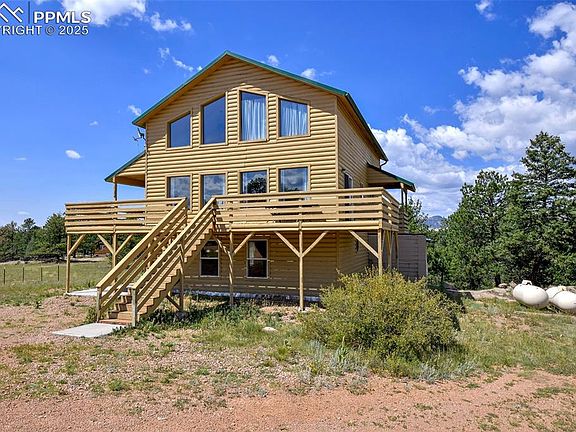 MOUNTAIN RETREAT, THE ONE YOU HAVE BEEN WAITING FOR!!! JUST AN HOUR FROM COLORADO SPRINGS!!! VERY PRIVATE SETTING WITH EXCEPTIONAL VIEWS - PANORAMIC VIEWS OF TREES AND/OR MOUNTAINS FROM EVERY WINDOW!!! 3.8 ACRES AND LOCATED AT THE END OF A QUITE CUL-DE-SAC; Over 3000 Square Feet WITH ALL 3 LEVELS OF LIVING, ABOVE GROUND!!! Outstanding Home Just Waiting For Your Family And Friends To Enjoy/Share!!! Amenities: Large Wrap-Around Deck; Loft Area Makes A Great Office Space; Second Loft Area Could Be 5th Bedroom (Does Not Have A Closet); Large Family/Recreation Room In Lower Level; 8 x 4 Storage Closet On Upper Level; SOLAR SYSTEM AND GENERATOR; VIEWS OF PIKES PEAK, THE SANGREOS, AND ROCK OUTCROPPINGS!!! IF YOU HAVE BEEN "DREAMING" OF A MOUNTAIN HOME, DON'T MISS SEEING THIS ONE, WHETHER YOU DESIRE A FULL TIME HOME, A VACATION HOME, AND/OR A SHORT TERM RENTAL PROPERTY!!! CHECK OUT THE PICTURES OF THIS OUTSTANDING PROPERTY!!!
