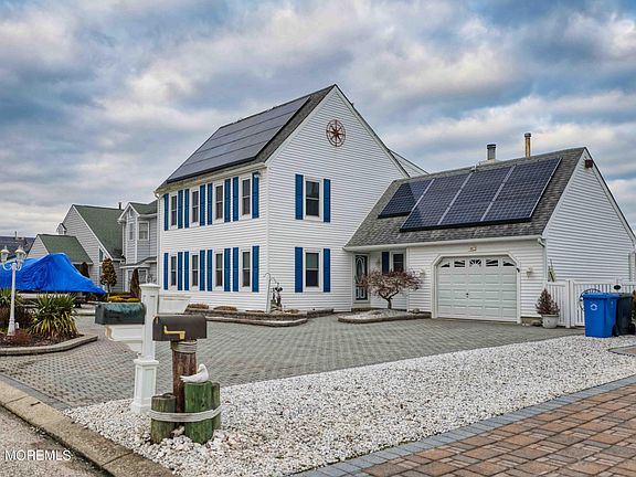 Welcome to heaven on the water! Immediately when you approach, you'll find beautiful paver landscaping, including a circular driveway. It might be time for a big party with so much parking! The covered porch makes for an easy entry during rainy weather. Once entering the wood foyer is a great place to take off your boots! To the left, the large formal living room leads to the formal dining room so there's lots of room to expand a place for guests. The large nautical kitchen even has little lighthouses on the cabinetry. Enjoy the breakfast bar facing the warm family room featuring the gorgeous stone fireplace. Exit from there to the ultra large sunroom where the sellers had enough room for 30 people for a holiday dinner this year! The multiple decks can be enjoyed especially when having a pool party with your heated inground pool! Dock your boat and cruise down to the bay with no bridges to obstruct your trip. Upstairs the 4 bedrooms and 2 full baths allows plenty of room for family or friends. The half bath downstairs is a bonus for those pool parties! Benefit from the ample storage between the large attic and the 1 1/2 car garage. Cozy fall nights the fire pit will warm your soul! Feel like you're on vacation all year long in this magnificent home!