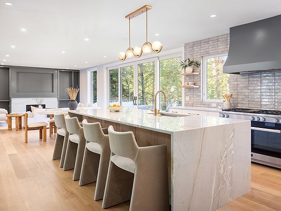 Nestled on an enviable block in Brookline's Chestnut Hill area, this 2025 to-the-studs renovation marks the confluence of modern luxury, architectural design, and California cool. Built around a bespoke skylit wood & glass staircase that extends to all three levels, the main living space offers interconnected living, dining and family room spaces that brilliantly link the house to the landscape. Magnificent modern kitchen / family room outfitted with a quartzite island, paneled Miele appliances, butler's pantry, fireplace, and French doors to the incredible deck and expansive backyard. 1st fl office & alternative primary suite. 2-car attached garage and custom mudroom. Four upstairs bedrooms including a sumptuous primary suite with double walk-in closets. 2nd fl laundry room. Stunning lower level with integrated home theater, sauna, gym, wine room & guest suite. 9' ceilings throughout. Premier location near shops, the Green Line, golf, the Country Club, public & private schools.