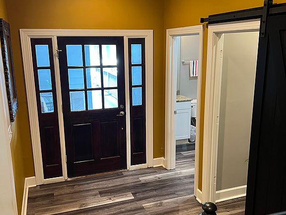 Step inside to find hard surface flooring throughout the main living areas and a thoughtfully designed floor plan. The primary suite is conveniently located on the main floor, featuring his-and-her closets, dual sinks, and a private bath. Upstairs, you'll find two additional bedrooms with cozy carpeting and a shared full bath.