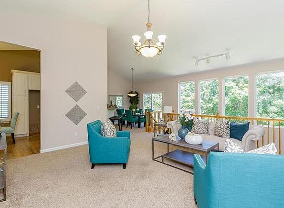 Tucked in a Culdesac this Atrium Ranch Style Home Backs to Towering Trees & Woods where Mother Nature is the Developer. 3 Car Garage, Main Floor Laundry, Club Pool & Club House! Step Inside to find a Home that makes a Statement! Columns adorn the Arched Entry Foyer. Leave your OLD China Cabinet behind. Enjoy a Built In Custom Made China Cabinet w/Glass Front Doors to Match the Custom Cabinets in the Kitchen w/Crown Molding, Granite Countertops, Decorative Glass Backsplash, Wood Floors & Smooth Top Stove. Breakfast Bar w/Overhang. Separate Dining Rm, Vaulted Luxury Master Suite features a Walk In Closet w/Organizers, Spacious Bath w/Sep Jetted Tub & Shower, Plantation Shutters & Frieze Carpet. All Baths have Framed Mirrors, Crown Molding & Tiled Floors. Cozy W/B Fireplace in the Finished W/O Lower Level w/4th Bedrm & Full Bath.Large Rec Family Rm is awaiting your Pool Table! Charm,Warmth & Traditional Elegance await you! Enjoy the Lifestyle! Admired by Many BUT could be Owned by YOU!