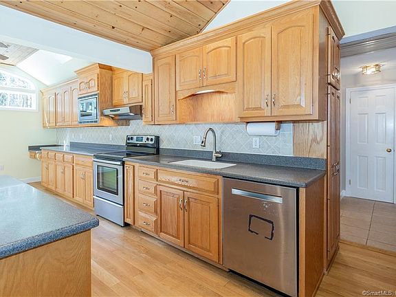 Spacious, contemporary ranch with open flow floor plan Situated on a beautiful corner lot w/cul-de-sac. Well-appointed eat-in kitchen with wood ceiling detail. Dual-sided fireplace HUGE primary bedroom w/vaulted ceiling offers walk-in closet & ultra cool ensuite bath 2 additional bedrooms w/full bath & powder room on main level provides plenty of "getting ready space" for everyone 4th bedroom in lower level (previously used as dressing room. Finished, walk-out lower level w/half bath adds an additional 900 sq. ft. and includes a workshop Cute & cozy media room/game room Nature abounds with lovely gardens, stone walls & koi pond with waterfall. Relax in the hot tub on the 3-season porch overlooking peaceful, private backyard. Detached barn/shed w/electricity 2-car garage Central vacuum Tons of storage in unfinished basement area. New HW heater New washer/dryer New fuel pump & combustion chamber on furnace. Convenient to golf course, Fisher Meadow, town pool, shopping, restaurants, walking trails & more Don't miss