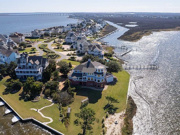 Must see stunning waterfront home in Pirate’s Cove! Perched on the point in Pirate's Cove, this exquisite custom-built home sits on 43,000 square feet of lush landscaping and offers unparalleled panoramic waterfront views and stunning architecture. Inside, you will find elegance and comfort with soaring ceilings, a ship's watch, an elevator, a wine cellar, a sauna, granite countertops, hardwood floors, his-and-hers master bathrooms, a gas fireplace, maple kitchen cabinets, an oversized two-car garage and much more.The spacious, light-filled interiors are designed to maximize the breathtaking scenery, with water views from nearly every room. The game room’s stunning wood ceilings add warmth and character, just one of the many thoughtful upgrades made by the current owners. Additional upgrades include: new roof, hot water heater, HVAC system, 2 upstairs bathrooms, spa heater/controller, downdraft gas cooktop, light fixtures, beach area with fire pit and the list goes on. Additionally a ground level room was remodeled to become a 6th bedroom and the elevator is being replaced to ensure convenience and accessibility throughout the home. All this plus enjoy all Pirate's Cove has to offer including two swimming pools, clubhouse, tennis courts, on-site restaurant and world class marina. What more can you want? Annual fee noted above includes landscaping. Don’t miss your chance to own one of the most spectacular properties in the Outer Banks!