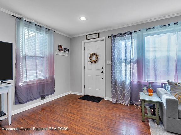 Whether you're drawn to the coastal lifestyle, the charm of antique finds, or the culinary delights of local eateries, this 2-bedroom, 1-bath home in historic Keyport provides a comfortable and stylish haven in a vibrant and welcoming community. Its quiet location is a short block to the marina and to the burgeoning downtown area. The entryway flows into the open concept living/dining rooms. The kitchen provides space for a cafe table & offers wood cabinets, porcelain flooring, quartz countertops, SS appliances with a backdoor leading to the fenced, spacious backyard. The primary bedroom has hardwood flooring & views of the creek & marina. Storage shed. Double-wide driveway. Basement for storage. Close to beaches, shopping, NY transportation, Rts 36/35 & GSP. Make this your new home! Flood Insurance is required.