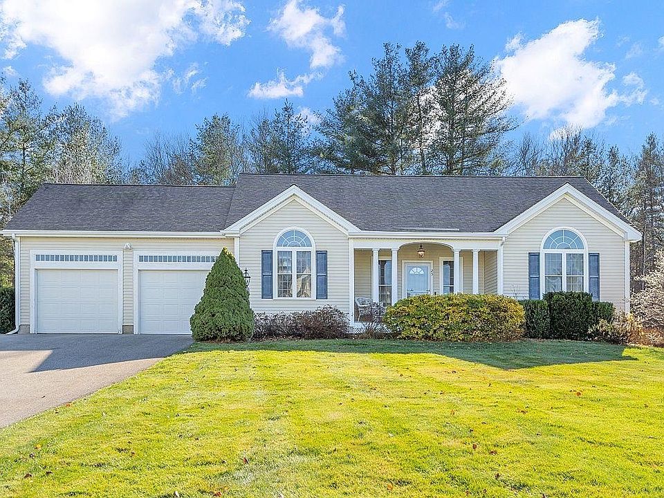 Welcome to Bela Brook Estates a neighborhood of distinction built by JH Spain! Beautiful Ranch that has been freshly painted and is ready for new owners. The garage has a wheelchair lift (which will be removed if buyer does not need). The ranch style floor plan is thoughtfully designed with a spacious open concept living/dining/kitchen area with Vaulted Ceilings. The kitchen has plenty of cabinets, breakfast bar, fully appliance, ceramic tiled floor, pantry and leads the sunroom. A bright sunny living room & formal dining room with hardwood. A spacious primary bedroom with hardwood floors, walk-in closet, laundry, and a 3/4 bath. There are 2 more spacious bedrooms on the other end of the home with hardwood flooring and a full bath between them. The 2-car garage is right off the kitchen. The 3-season sunroom has plenty of windows and leads to a great size deck. The basement has high ceilings and a walkall and ready to be finished if you need more space. The systems are in fine condition. Whole house Generator. Great yard all around. Professionally landscaped with Irrigation. One original owner has loved and truly cared for this home and it shows. Home abuts acres of conservation land w/many trails. A wonderful cul-de-sac with no thru traffic. Close to 89/93.