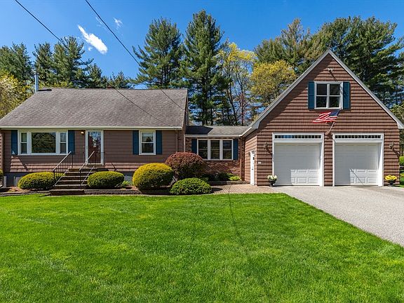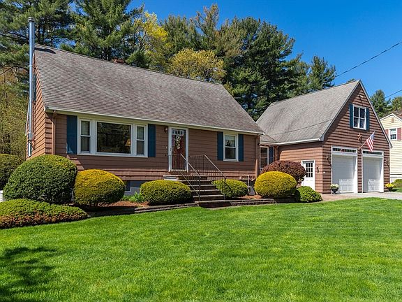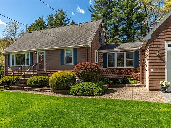 EXPANDED Cape in coveted neighborhood sits perfectly on manicured, park like lot. Entry leads to welcoming living room with wood burning stove. Follow to kitchen with updated cabinetry and granite counters, open to family room/den. FIRST FLOOR Bedroom with full bath. A large addition provided a charming breezeway (oversized with several potential functions: sunroom, dining area, office) with large picture window and sliders to oversized deck overlooking serene, private backyard outlined with mature landscape and picturesque flowering beds. Breezeway leads to inviting, spacious, family room with cathedral ceiling, atop two car oversized garage. Upstairs are two more bedrooms sharing a half bath. Newer: roof, replacement windows, HVAC, full home generator, outside just painted. METICULOUS, every corner has been maintained. This home has a WARM, WELCOMING feeling with charm at every turn! WELL LOVED by one family for almost 60 years, ready for new owners to CHERISH!