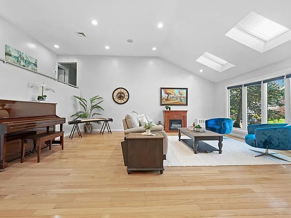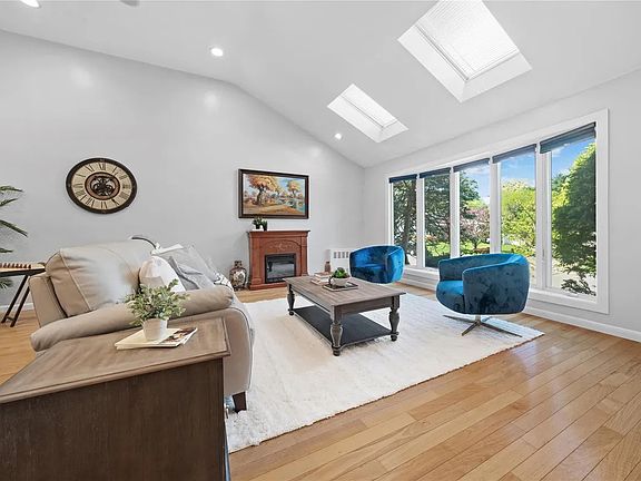 This stunning split-level home features a spacious eat-in kitchen with custom cabinetry, granite countertops, and state-of-the-art appliances. The formal dining room and sunlit living room are enhanced by skylights, creating a bright and welcoming atmosphere. Upstairs, you'll find three generously sized bedrooms. The primary suite boasts its own en suite bathroom, while the two additional bedrooms share a well-appointed hallway bath. A full laundry room on this level adds convenience. The lower level offers even more living space with a den, one bedroom, a full bath, and two sizable closets. There's also a finished basement perfect for recreation, storage, or a home office. Additional highlights includes Generac natural gas 200 amp generator, an attached two-car garage and a desirable corner property location on a quiet, tree-lined street.