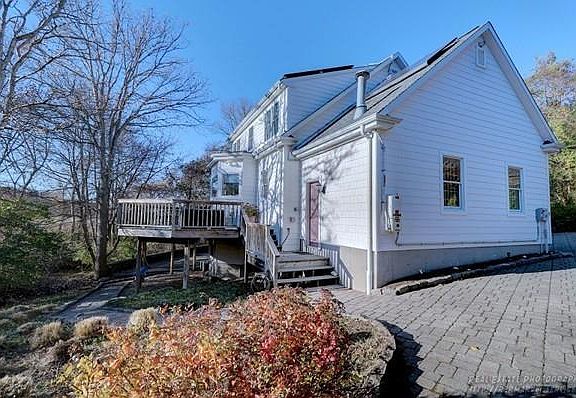 Experience this meticulously cared for Custom Cape style home, built without compromise; Located in a picturesque, private setting...exceptional entertaining space; Kitchen balances a chef's culinary office with convenient dining at the breakfast bar, flowing into an open floor plan living room; Natural sunlight beams throughout the house. First floor master bedroom dons three closets and a private bathroom; Other first floor features include laundry and attached garage bay, making daily living an ease; Finished room in the basement is perfect for a home based business, with a separate entrance, radiant heat and a secure closet with a commercial grade safe; This sale includes a second lot, currently the location of two regulation size, illuminated Bocce courts; You have options...Keep the two lots as is and entertain on the large deck overlooking the courts or take out the courts and install a pool or sell off the lot; Heated garage bay; Solar subsidizes electric bill; A must see!