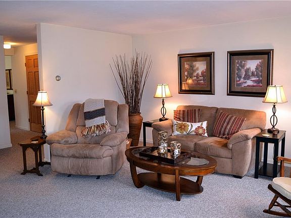 Enjoy the simplicity of SINGLE FLOOR LIVING in this beautiful Birch Meadow PUD. Quiet end-unit ranch with great privacy. Nicely designed with just the right amount of space and storage. 1,184 square feet featuring two large bedrooms, large formal living room, dining room with a French door to the private deck, kitchen with ample counter and cabinet space, 1st floor laundry and a single step into the attached single car garage. Perfection! The backyard deck is wonderfully private with wooded views. 1 car attached garage, paved driveway and nearby overflow parking for your guests.