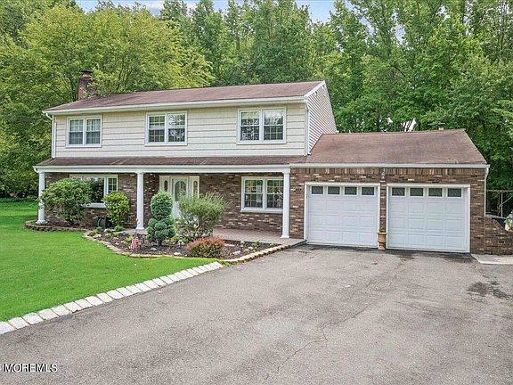 Welcome to 25 Birmingham Drive, a beautiful Center Hall Colonial nestled on a peaceful cul-de-sac in the heart of Manalapan Township. This home offers 4 bedrooms, 2.5 baths, and a 2-car direct entry garage, perfect for modern living. As you arrive, you'll be greeted by an oversized Belgium block driveway and a charming front porch that invites you to explore further. Inside, the large family room with a cozy brick wood-burning fireplace provides the perfect setting for relaxation. The dining room, featuring a beautiful bay window, and the formal living room, with gleaming hardwood floors, offer elegant spaces for entertaining. The spacious sun-filled eat-in kitchen is a chef's delight, boasting granite counters, a stylish backsplash, and recessed lighting. An updated powder room and a large laundry/mudroom with convenient backyard and garage access complete the first level. Upstairs, you'll find generously sized bedrooms, including a luxurious primary suite with an ensuite bath and a walk-in closet. Step outside to your own private oasis. The covered paver patio is perfect for outdoor dining, overlooking a fully fenced, heated inground pool and a park-like yard with a playground and shed. This country club backyard is perfect for summer gatherings and relaxation. Ideally located to all major highways, NYC transportation, and shopping. Top-rated Manalapan Township school district. A perfect 10!