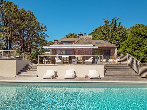 Rental Registration #: RP240335 Private Southampton property just minutes away from Village and Ocean Beaches. Contemporary home features 4 bedrooms, including a large master suite with sitting room (potential 5th bedroom) and two private decks, 3.5 baths, open living and dining, kitchen with Viking stove, central air, fireplace, fitness room, and 2 car garage. The beautiful back-yard offers a heated pool, expansive high end Brazilian Ipe decking, and a lovely mix of professional/ natural landscape with protective deer fencing.