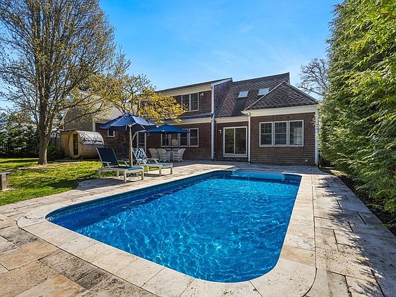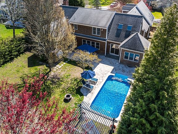 In the heart of Osterville Village, this shingle-style home blends classic Cape Cod charm with modern comfort. The eat-in kitchen features stainless steel appliances, a spacious island, and a sunlit breakfast nook, flowing easily to the dining room with views of the pool and private backyard. A living room and office complete the main living spaces. The first-floor primary suite includes a walk-in closet and large bathroom. The second level boasts three additional bedrooms and a flexible bonus area. A two-car attached garage adds convenience to this inviting village home. Located minutes from Main Street, Dowses Beach, and everything else Osterville has to offer.