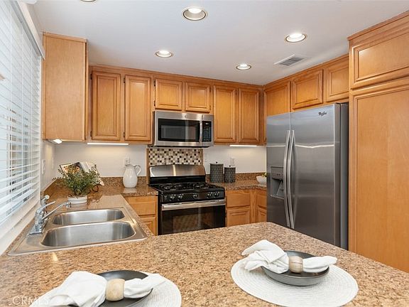Welcome to this stunning 3-bedroom (plus loft) 2.5-bathroom detached home nestled in the highly sought-after community of Magnolia Lane within Rancho Santa Margarita's Las Flores community. This 1,253 square foot home was impeccably designed with a thoughtfully laid out floor plan. As you step inside, the lower level boasts an inviting open concept living/dining/kitchen space adorned with recessed lighting and a focal point gas fireplace that sets the tone for cozy gatherings. The kitchen has been tastefully updated with new countertops, sleek stainless steel refrigerator, and tile flooring. Throughout the home you will find laminate flooring, creating the ideal canvas for your personal touch. Dual pane windows and white wood blinds add a touch of sophistication to the home's ambiance. Upstairs, the primary suite features a generously sized walk-in closet, dual sinks and travertine flooring in the vanity area. Two additional bedrooms on this level offer ample closet space and share a full hallway bathroom. All the bedrooms have ceiling fans. In addition, the loft area provides open space for an office or play area with lots of windows and natural light. The attached direct-access 2-car garage features lots of built-in cabinetry and convenient laundry hookups. Las Flores offers a delightful community experience with amenities such as a pool, spa, bbq area, playgrounds, ballfields, tennis court and a playful splash pad for hours of enjoyment. The home is perfectly situated close to top-rated Las Flores Elementary and Middle schools and Tesoro HS , the toll road, scenic hiking trails, and shopping centers.