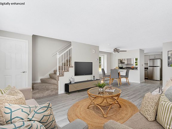 THIS IS THE ONE YOU’VE BEEN WAITING FOR! TURN KEY, FRESHLY PAINTED AND THOROUGHLY UPDATED TOWNHOME…NOTHING TO DO BUT MOVE IN AND ENJOY! Conveniently located near commuting routes that take you to favorite shopping and dining, this desirable end unit has been completely renovated and refined with a designer’s eye. Gather in the living room where neutral paint and new chic gray flooring set the tone. A large bay window fills the space with abundant natural light. Just past the dining area a refreshed kitchen will please the cook with granite countertops accented by white subway tile backsplash. A suite of stainless appliances, including a new refrigerator, makes meal prep a pleasure as you keep an eye on outdoor barbecues and alfresco fun in the back yard. The first floor powder room and all of the bathrooms boast elegant vanities and mirrors; no detail was overlooked! At day’s end, retreat up newly carpeted stairs to the primary featuring a sleek ensuite bath and dual closets. A second bedroom with its own bath pampers guests. Want more? The third floor loft can serve as a rec room, office space or additional bedroom to suit your lifestyle. Did we mention the new hot water heater, thermostats, ceiling fans and baseboard registers? This is better than new! Community amenities include walking trails, tennis and basketball courts, a club house and inground pool. What are you waiting for? EXQUISITELY UPGRADED AND IDEALLY LOCATED...ENJOY A MAINTENANCE-FREE LIFESTYLE TODAY!