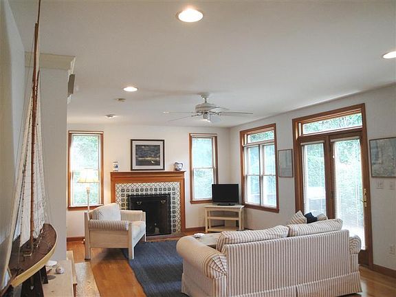 Pretty views of your Pond & distant views of Cape Cod Bay! 3 minutes to Skaket Beach & even closer to the Back Beach! Beautiful Greek Revival being sold furnished w/ a wonderful open floor plan, high ceilings & spacious sun filled rooms! A Farmer's Porch leads to a large eat-in kitchen adjacent to the lovely 1st floor living room w/ fireplace & French doors leading to the deck. There is also a 1st floor guest bedroom en suite. Very distant views of the Bay from the 2nd level w/ a master bedroom & an en suite master bath plus a large guest bedroom also w/ an en suite bathroom! Almost an acre of privacy on a lovely large level lot. Enjoy spectacular sunsets & 4th of July fireworks! Fabulous swimming, boating, fishing & clamming on the beaches or enjoy walking the flats at low tide & finding small fish in the tidal pools!